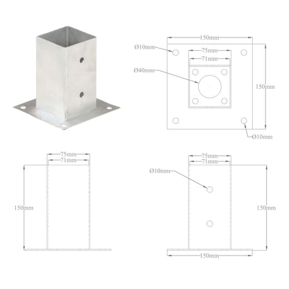 Pfostenanker 4 Stk. Verzinktes Metall 71 mm