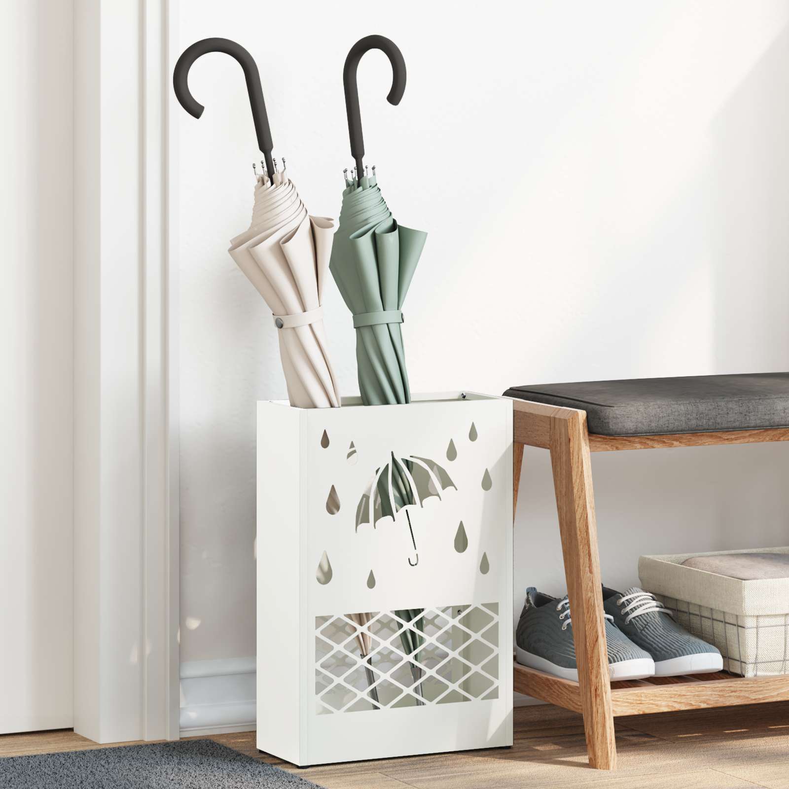 Dieser moderne Regenschirmständer mit Stauraum vereint Stil und Zweckmäßigkeit. Damit bleibt dein Eingangsbereich ordentlich. Seine schlanke rechteckige Form passt super zu modernem Raumdesign und betont die Einfachheit sowie Eleganz. Der robuste Stahlrahmen sorgt für Halt und Langlebigkeit, wodurch er der perfekte Mittelpunkt für jeden Innenraum wird. Materialien: Hergestellt aus robustem Stahl, ist der Regenschirmständer langlebig und behält ein modernes Aussehen. Die Stahlkonstruktion ist so designt, dass sie täglichen Gebrauch übersteht und gleichzeitig stylisch ist. Dank der wasserabweisenden Oberfläche bleiben deine Sachen immer trocken. Enthaltene Komponenten: Der Ständer hat eine ansprechende Rückseite, sodass du ihn überall ohne Wandhalterung aufstellen kannst. Ideal für verschiedene Platzierungen in deinem Raum. Stabil und sicher, bietet er zuverlässig Stauraum für Regenschirme und mehr. Merkmale / Funktion / Design: Ein Highlight ist der großzügige Stauraum, der genug Platz für mehrere Regenschirme und andere wichtige Dinge im Eingangsbereich bietet. Perfekt für hektische Haushalte, die schnellen Zugriff und Ordnung brauchen. Empfohlene Verwendung: Vor allem für drinnen gedacht, passt dieser Regenschirmständer wunderbar in Eingänge, Flure oder Büros. Sein minimalistisches Design ergänzt moderne Deko und sorgt für Ordnung im Raum. Pflege & Wartung: Halte den Ständer einfach sauber, indem du ihn mit einem feuchten Tuch abwischst und aggressive Chemikalien vermeidest. So bleibt er wie neu und hält länger.