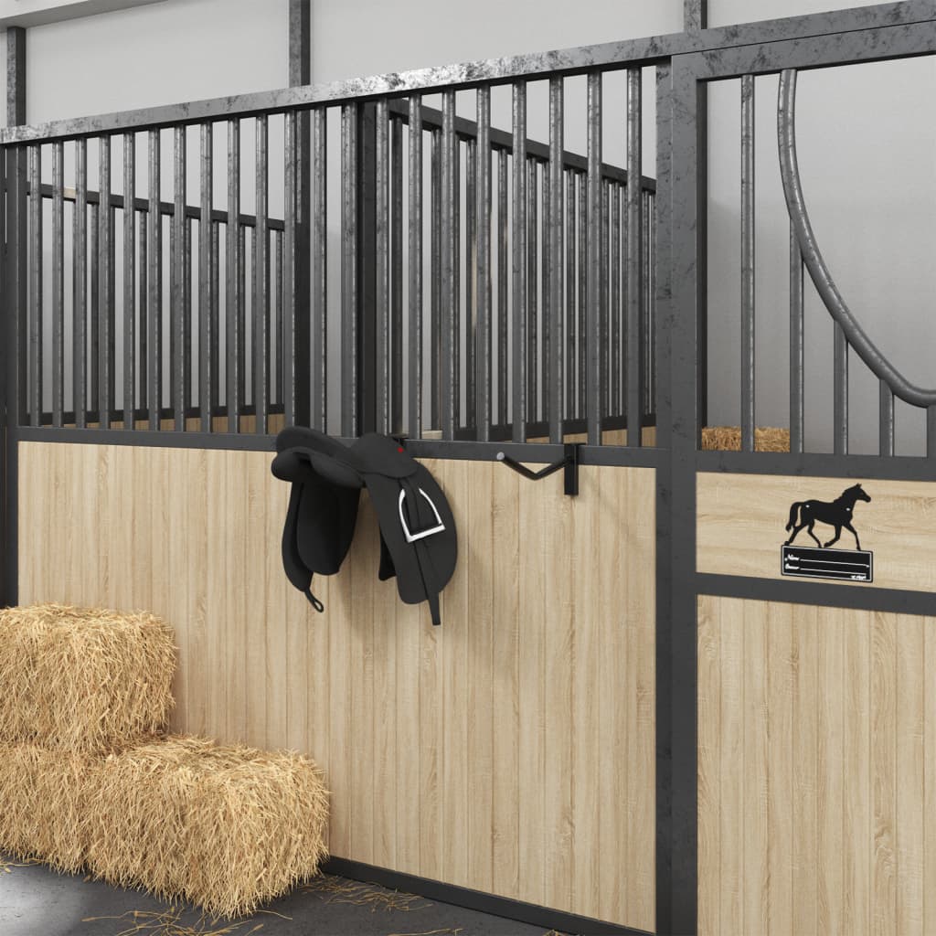 Mit diesem schlichten und dennoch langlebigen Sattelhalter kannst du deinen Sattel in deinem Sattelraum sicher und ordentlich aufbewahren. Langlebige und robuste Konstruktion: Dieser Sattelhalter besteht aus pulverbeschichtetem Eisen und ist daher robust und widerstandsfähig. Er ist auf eine lange Lebensdauer ausgelegt und ist verschleißfest.Tragbar: Dieser Sattelträger ist tragbar und kann leicht an einem Zaunbrett, Anhänger, Scheunentor, Kabinenwänden oder anderen Oberflächen aufgehängt werden.Trensenhaken: Der tragbare Sattelhalter ist mit einem Trensenhaken versehen und mit den meisten üblichen Satteln kompatibel.Leicht und kompakt: Der Sattelträger ist leicht und kompakt, sodass er kaum Platz in deinem Stall oder Pferdeanhänger einnimmt.Breite Anwendungen: Dieses Sattelgestell eignet sich sowohl für den gewerblichen als auch für den privaten Gebrauch und findet den perfekten Platz in deinem Sattelraum, deiner Scheune oder deinem Stall. Gut zu wissen:Die Befestigungsschrauben sind nicht im Lieferumfang enthalten.