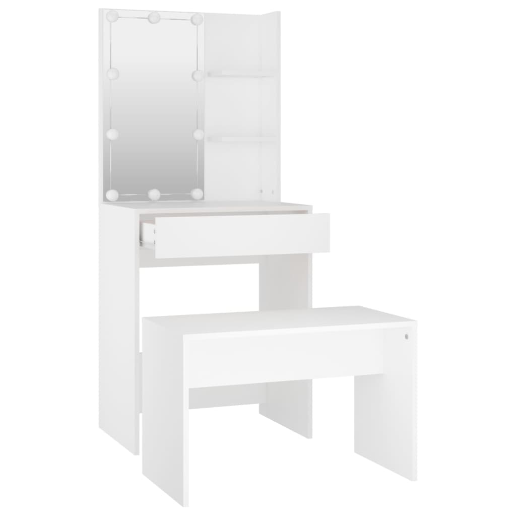 Schminktisch-Set mit LED Weiß Holzwerkstoff