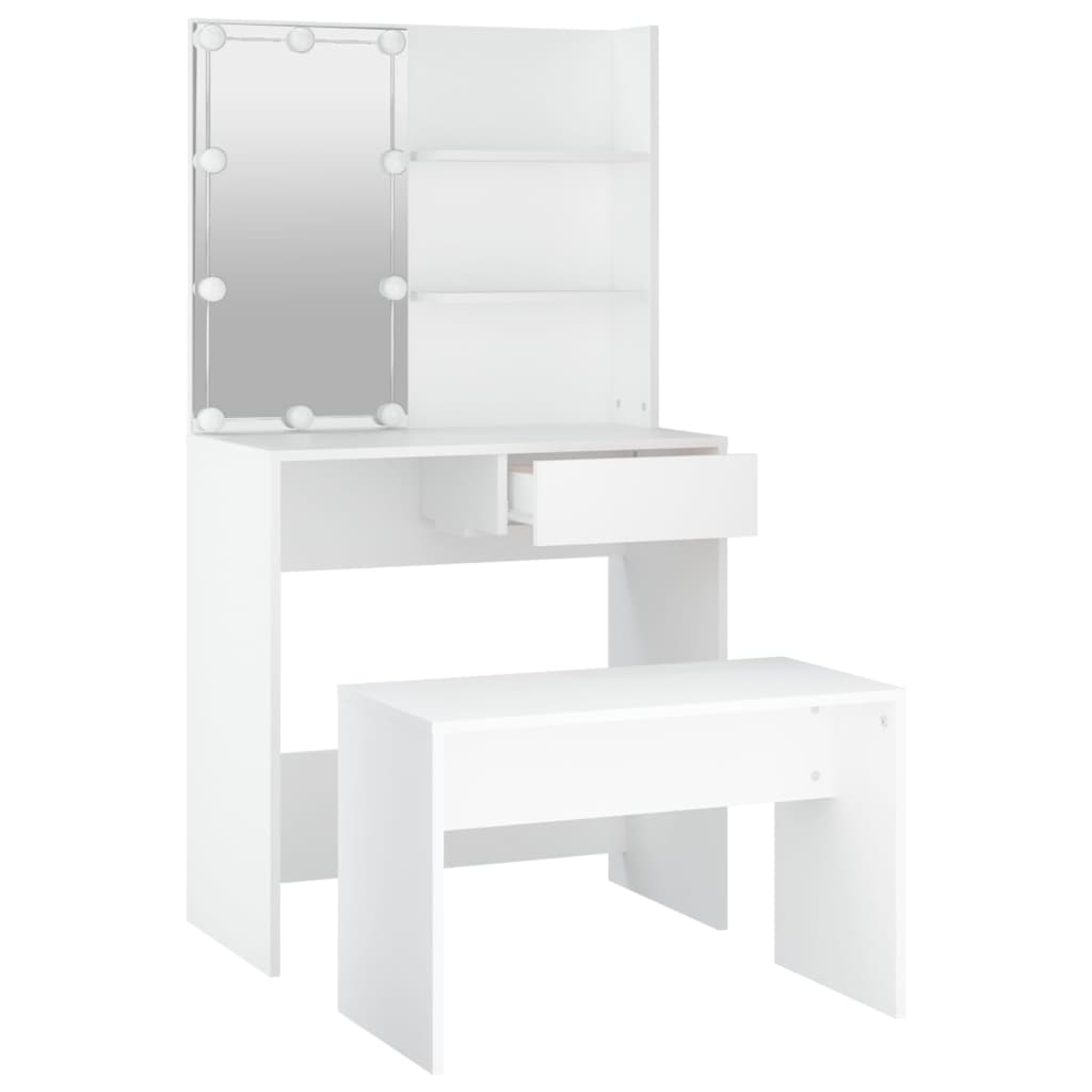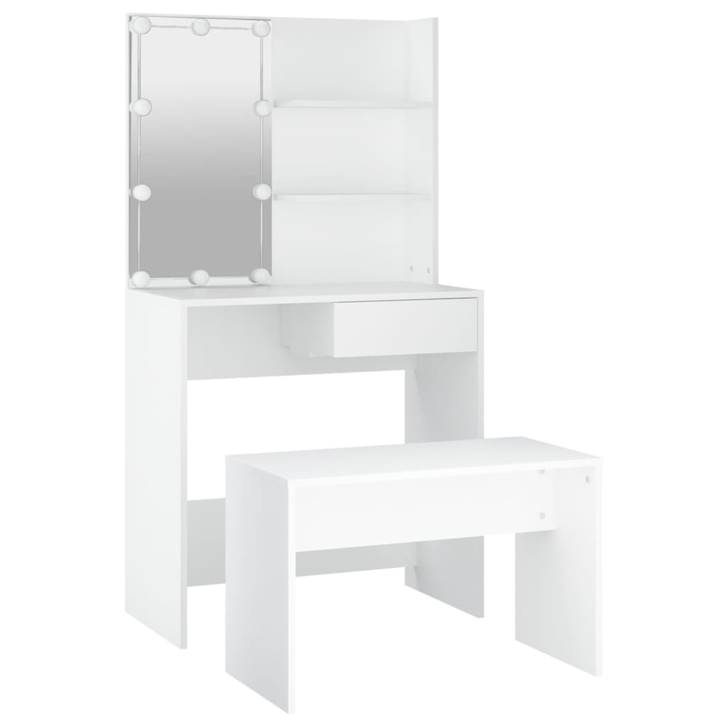 Schminktisch-Set mit LED Weiß Holzwerkstoff