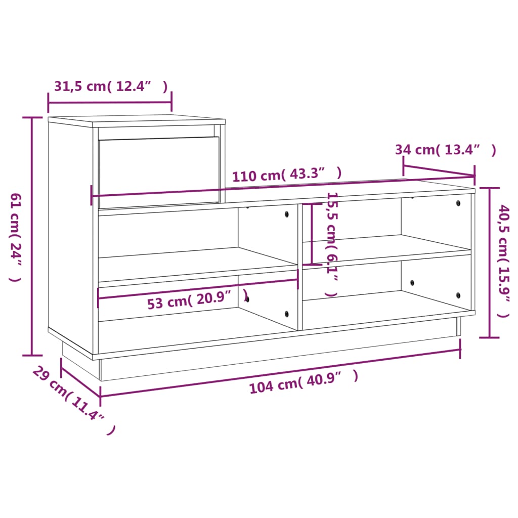 Schuhregal 110x34x61 cm Massivholz Kiefer