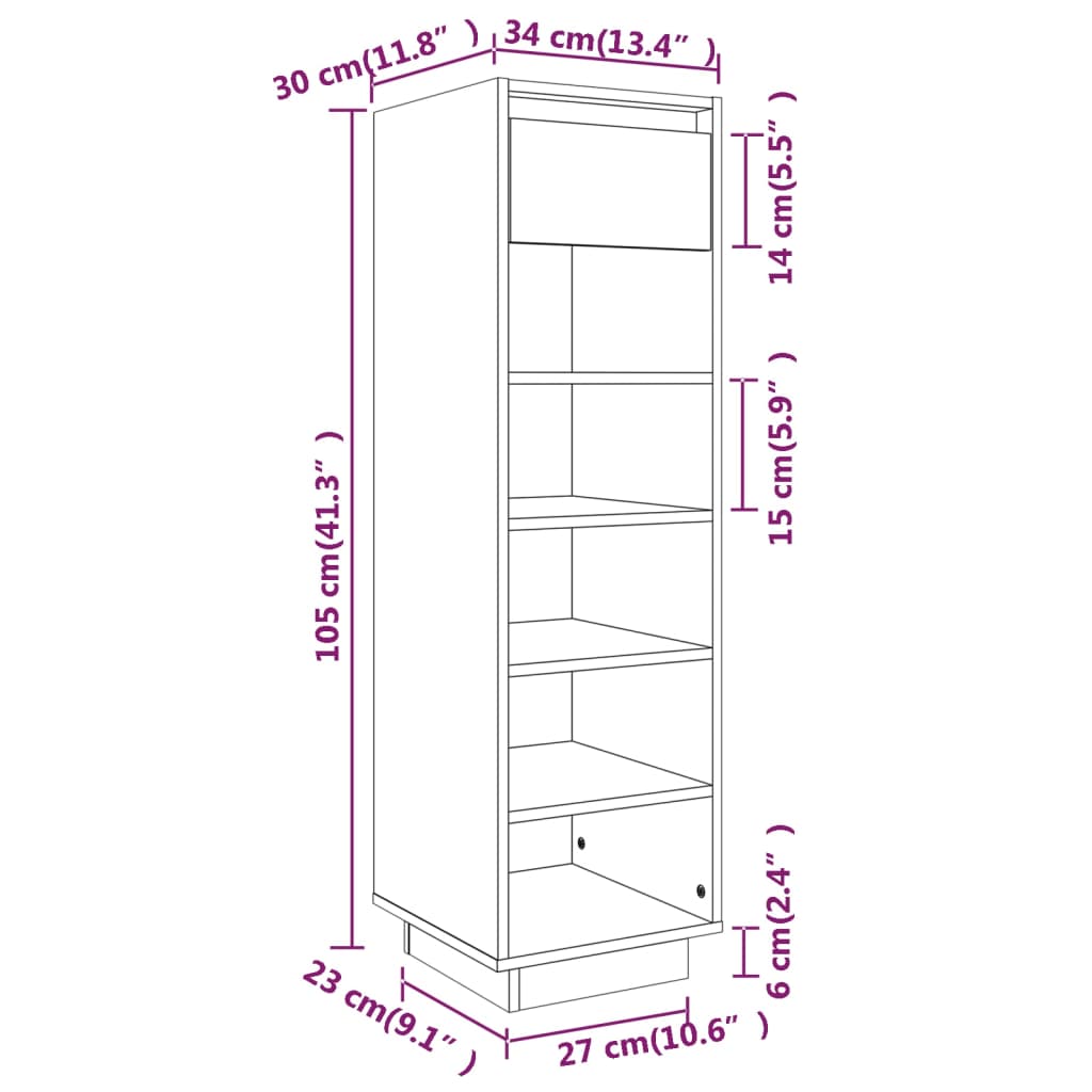 Schuhregal Honigbraun 30x34x105 cm Massivholz Kiefer