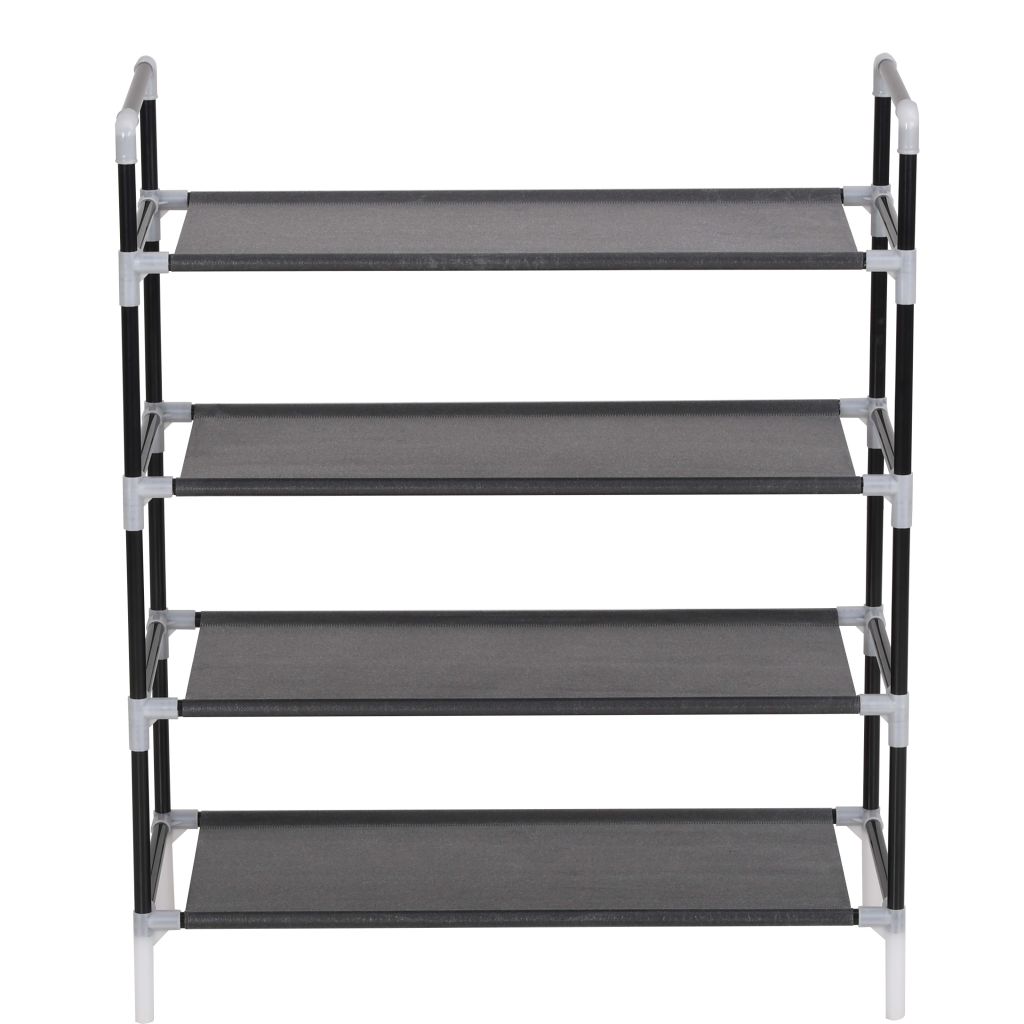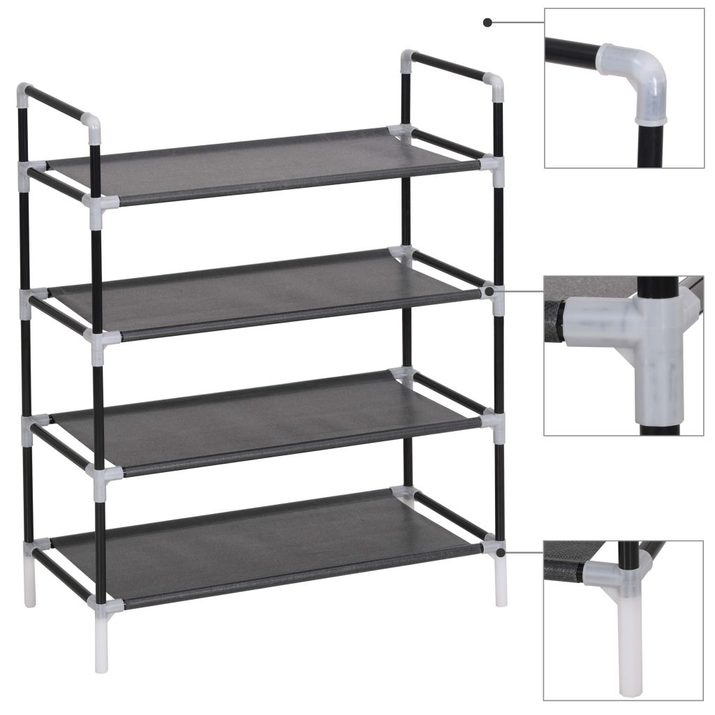 Schuhregal mit 4 Ablagen Metall und Vliesstoff Schwarz