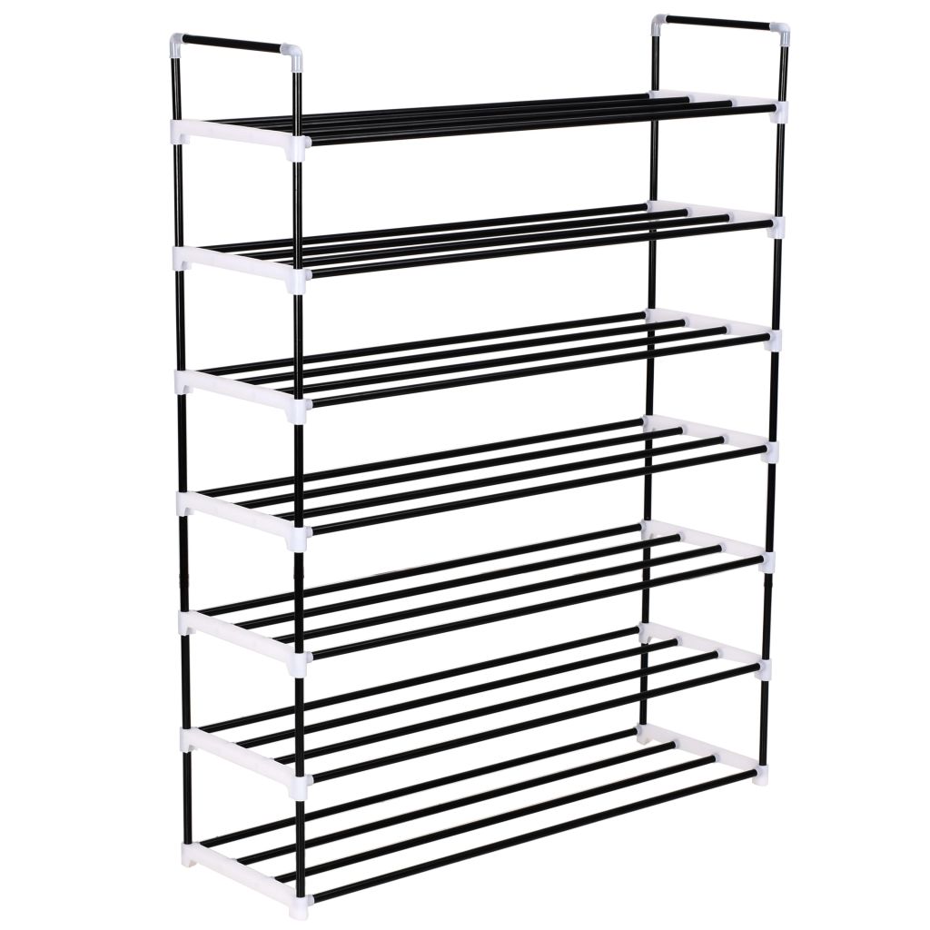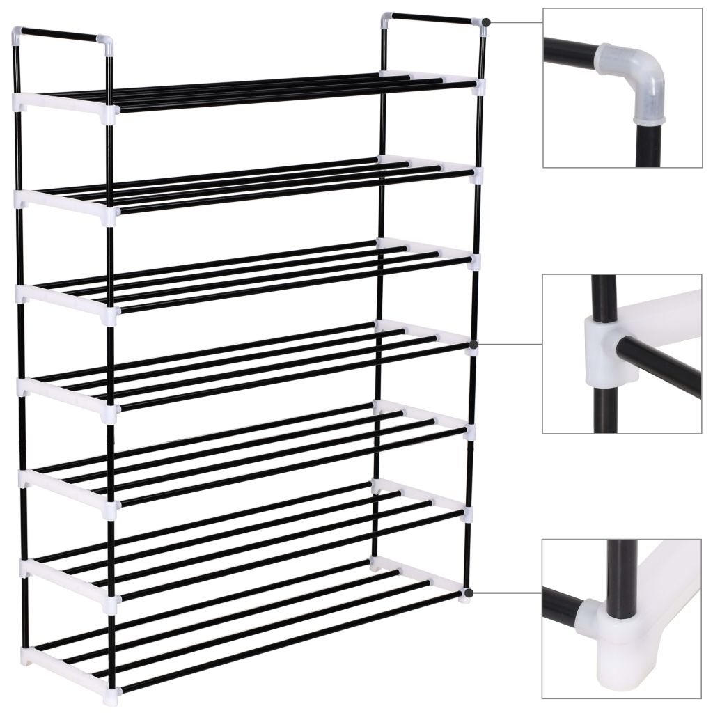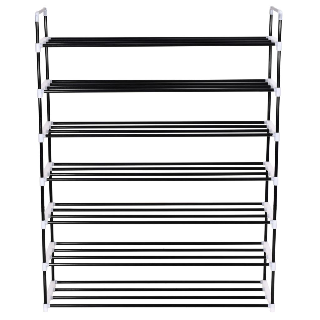 Schuhregal mit 7 Etagen Metall und Kunststoff Schwarz