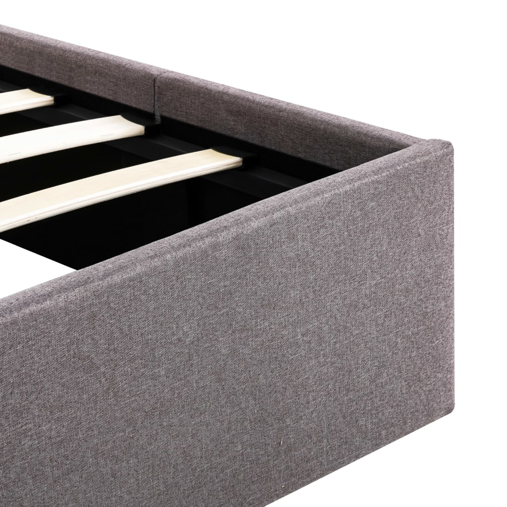 Verleihen Sie Ihrem Schlafzimmer mit diesem hydraulischen Bettrahmen aus Stoff sofort ein beeindruckendes und modernes Aussehen! Dieses Doppelbett zeichnet sich durch ein einfaches und zugleich stilvolles Design sowie einer soliden Konstruktion aus, da es aus starkem und robustem MDF gefertigt ist. Dieses Polsterbett verwandelt den ungenutzten Raum unter der Matratze in einen Stauraum mit viel Platz zur Aufbewahrung von Kleidung, Laken, Decken usw. Der hydraulische Gashebemechanismus macht das Anheben der Matratze zum Kinderspiel. Der Lattenrost steht nach dem Anheben aufrecht, sodass Sie beide Hände frei haben, um darunter liegende Gegenstände zu entfernen oder zu verstauen. Der pulverbeschichtete Stahlrahmen und die Sperrholzlatten tragen zur Robustheit und Langlebigkeit des Bettes bei. Das mit strapazierfähigem Stoff gepolsterte Bett wirkt einladend und ist pflegeleicht. Dieser Artikel ist leicht zu montieren. Dieses Schlafzimmermöbel ist für eine Matratze von 160×200 cm vorgesehen. Bitte beachten Sie, dass im Lieferumfang nur das Bettgestell enthalten ist. Eine Matratze ist nicht im Lieferumfang enthalten. In unserem Shop finden Sie die passenden Matratzen.