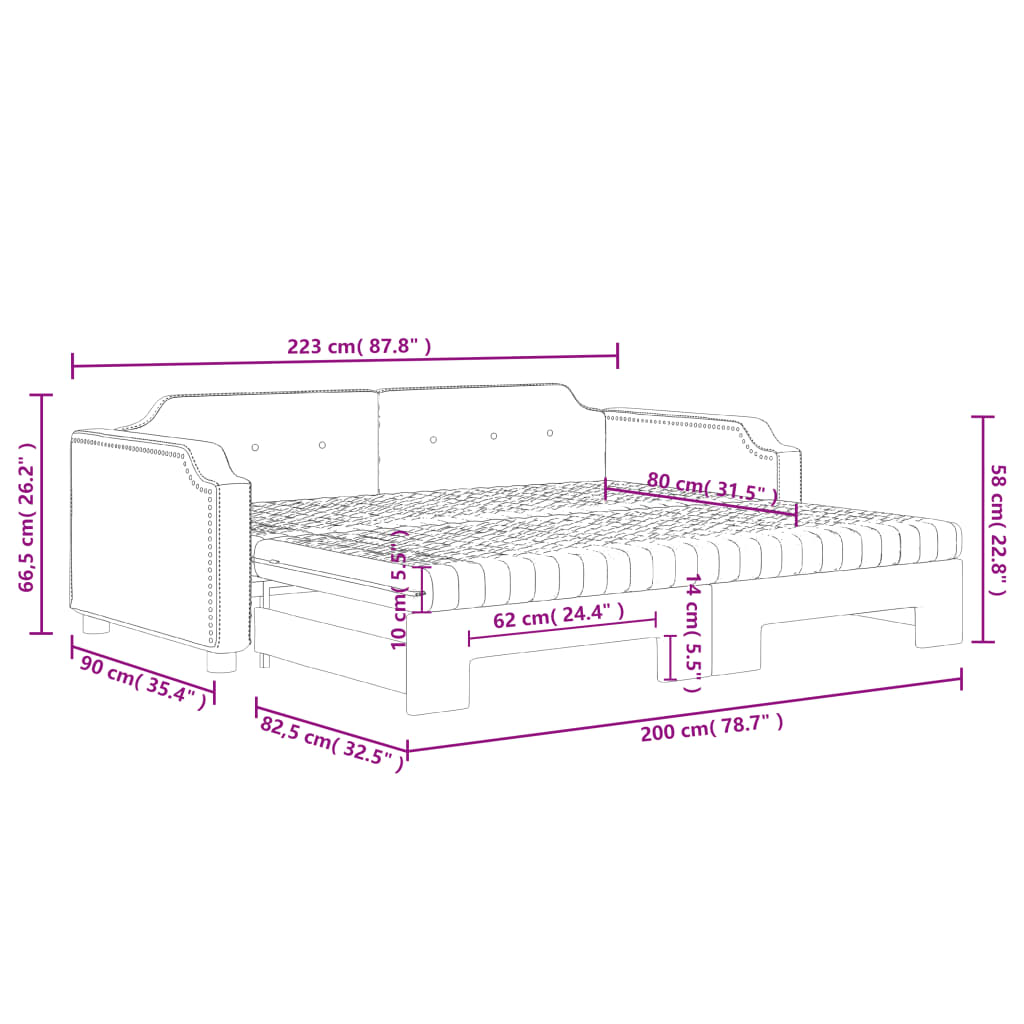 Dieses ausziehbare 2-in-1-Tagesbett, das sowohl als Sofa als auch als Bett dient, ist eine praktische und auffällige Ergänzung zu deinem Wohn- oder Schlafzimmer. Vielseitiges Tagesbett: Das Schlafsofa fungiert tagsüber als Sofa und lässt sich nachts durch Ausziehen des Rollkastens leicht in ein Doppelbett verwandeln - eine praktische Lösung, um Gästen einen bequemen Schlafplatz zu bieten und den Platz zu maximieren. Komfortable Schaumstoffmatratze: Dieses Schlafbett wird samt zwei Schaumstoffmatratzen geliefert, die für maximalen Halt und optimalen Komfort sorgen. Strapazierfähiger Stoff und robuste Konstruktion: Dieses Tagesbettsofa besitzt einen stabilen Rahmen aus Holz und Metall und ist mit strapazierfähigem und bequemem Stoff bezogen.