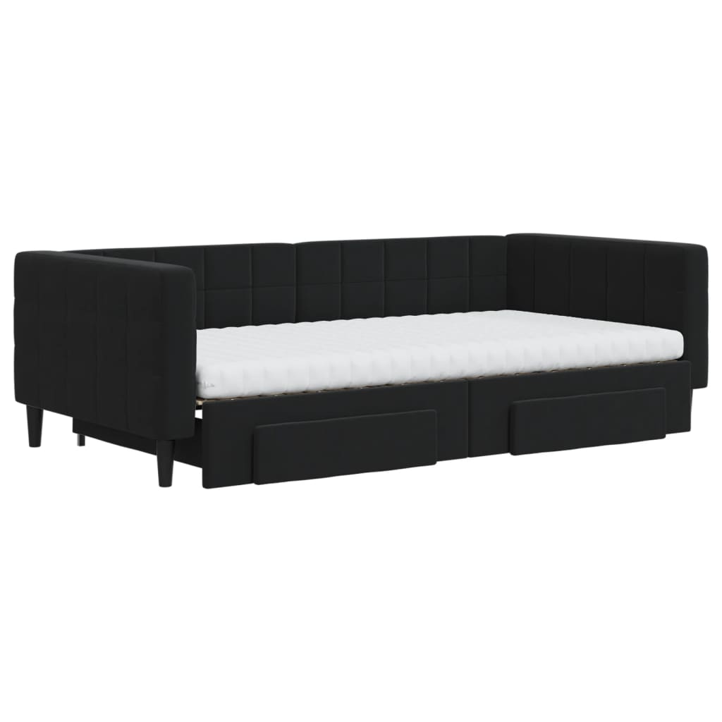 Tagesbett Ausziehbar mit Schubladen Schwarz 100x200 cm Samt