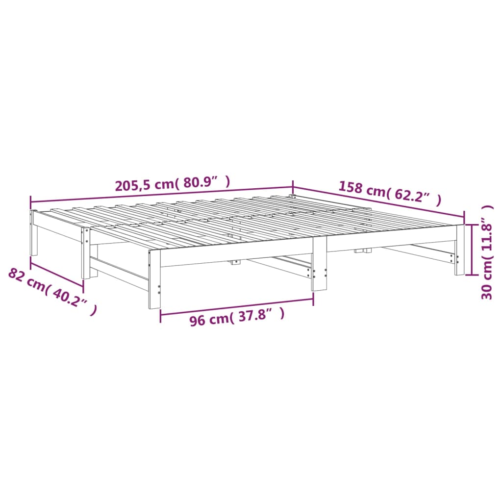 - Abmessungen des Tagesbettes (ausgezogen): 205,5 x 158 x 30 cm (L x B x H)