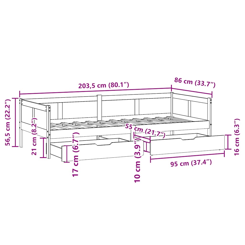 Tagesbett mit Schubladen 80x200 cm Massivholz Kiefer