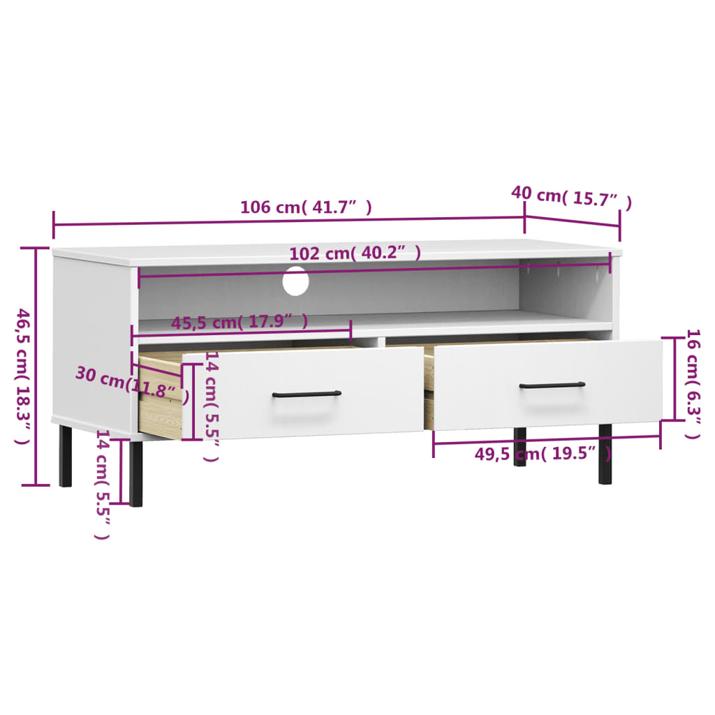 TV-Schrank OSLO mit Metallbeinen Weiß Massivholz Kiefer
