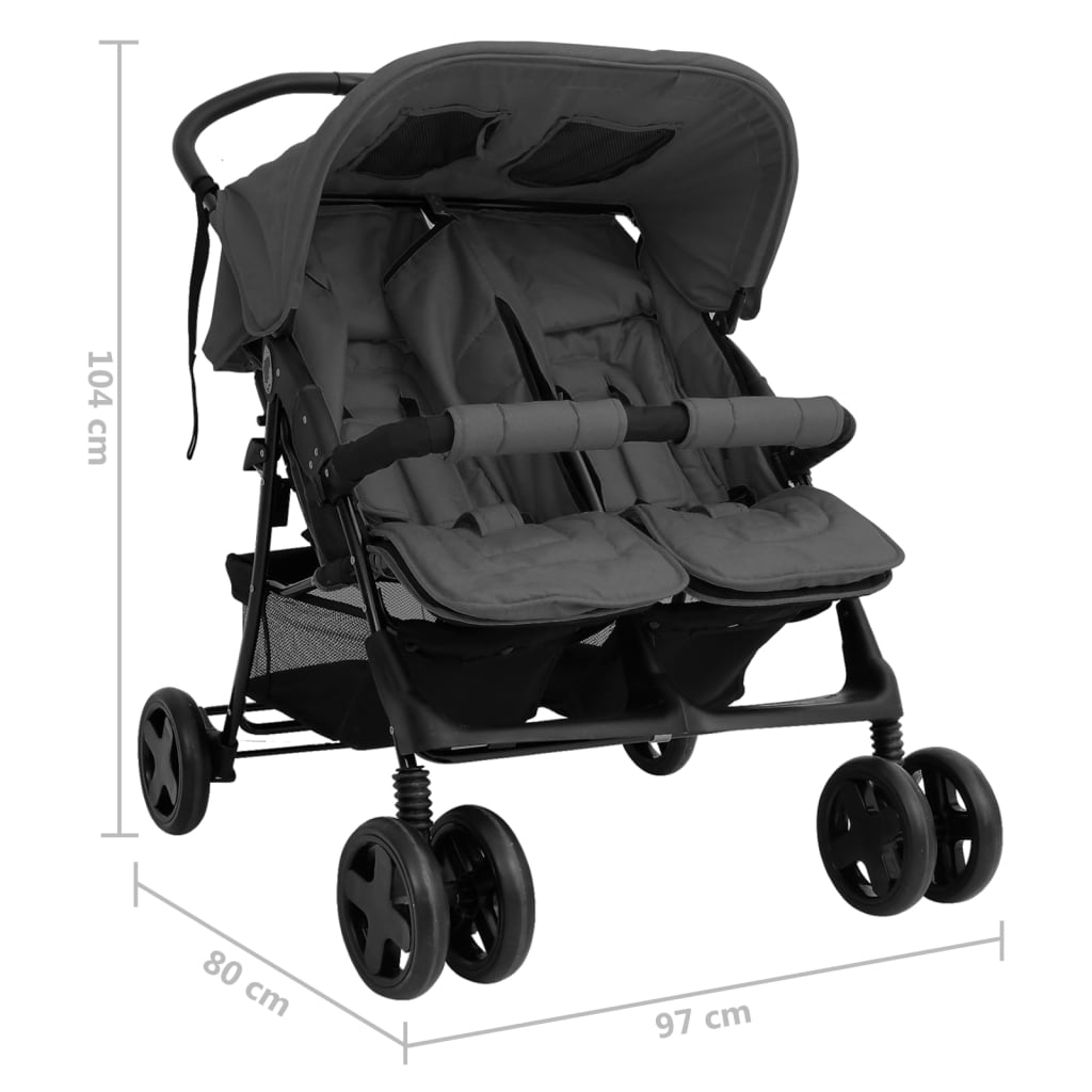 Zwillingskinderwagen Dunkelgrau Stahl